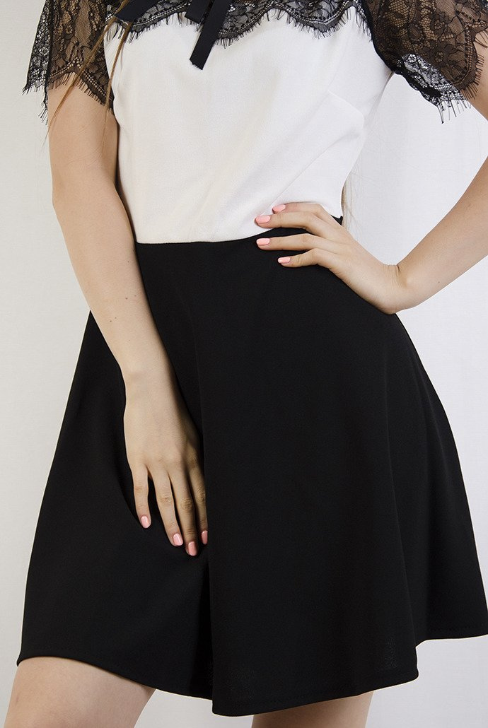 Biało czarna rozkloszowana sukienka z kołnierzem
