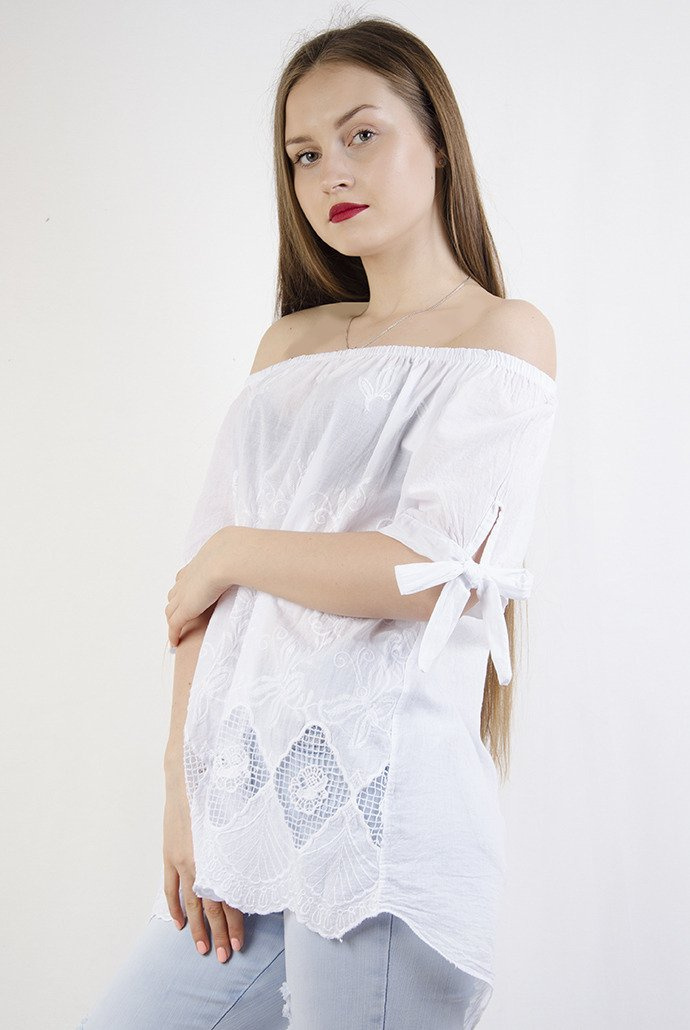Biała bluzka ze wzorami na dole