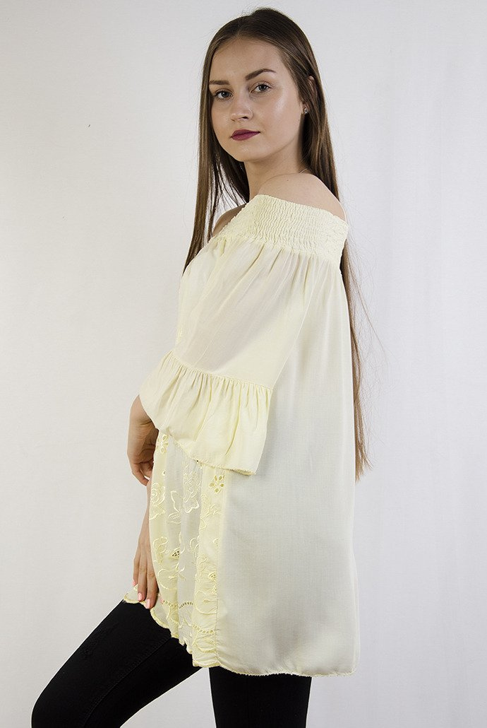 Żółta bluzka z  szerokim ściągaczem w dekolcie