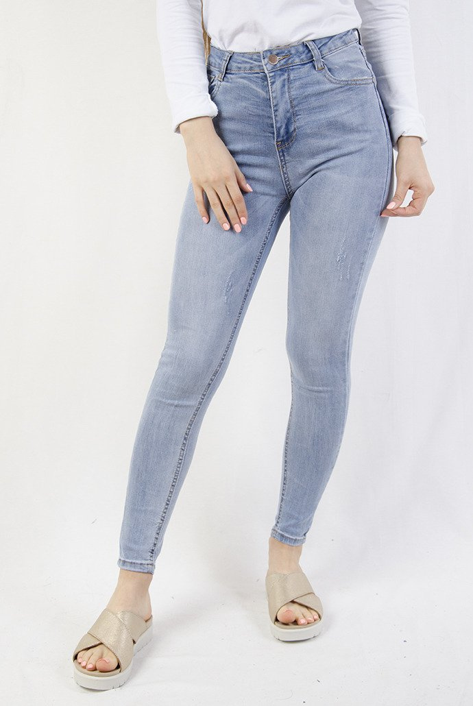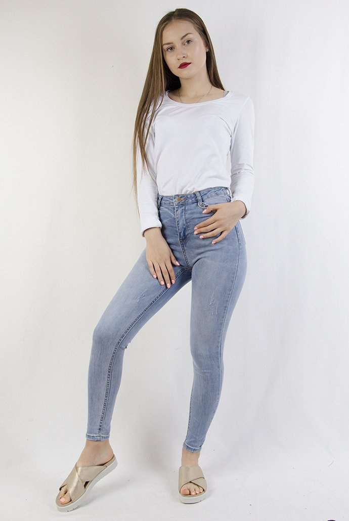 Jasne spodnie jeansowe z delikatnymi przetarciami
