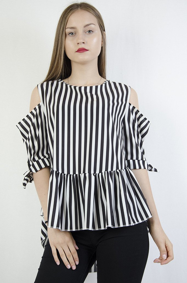 Biało czarna bluzka w paski z odkrytymi ramionami