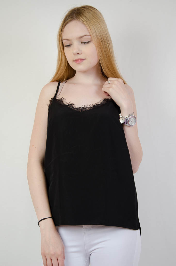 Czarny top z koronką z regulowanymi ramiączkami