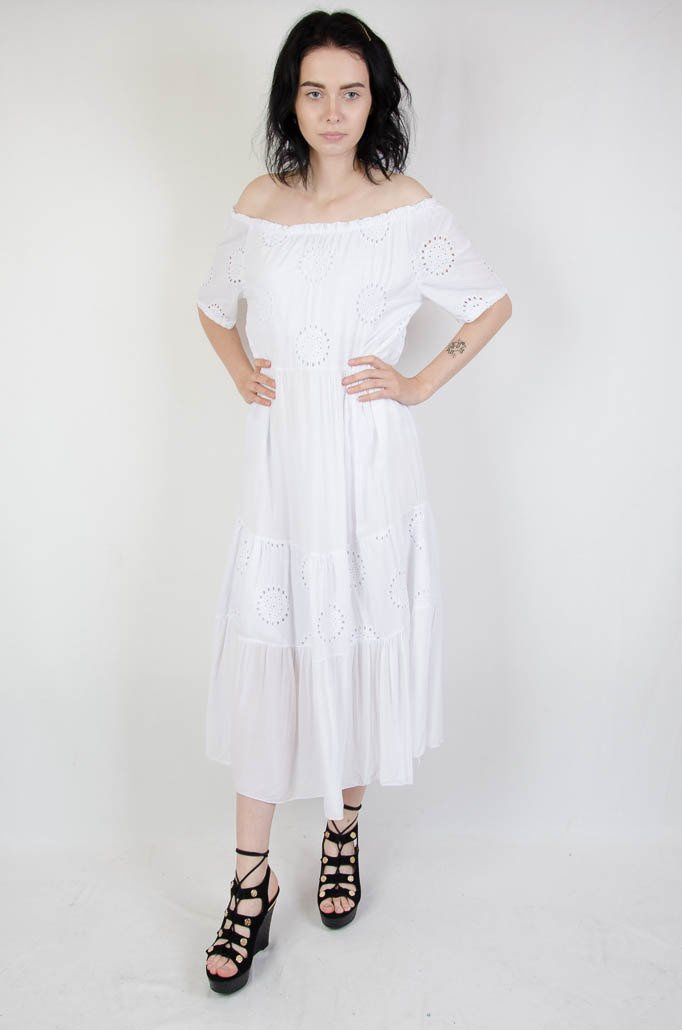 Biała sukienka hiszpanka z ażurowymi wzorami