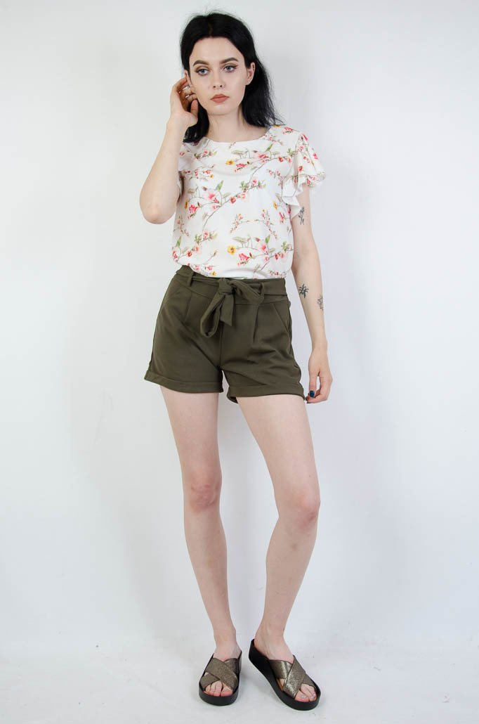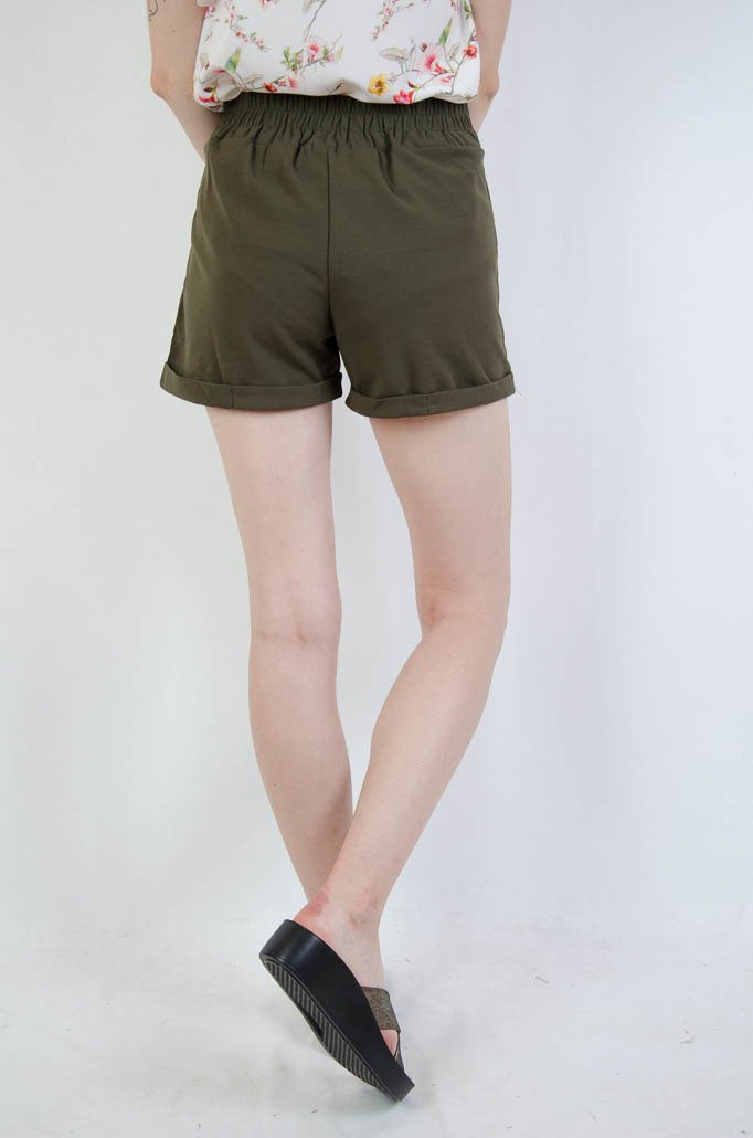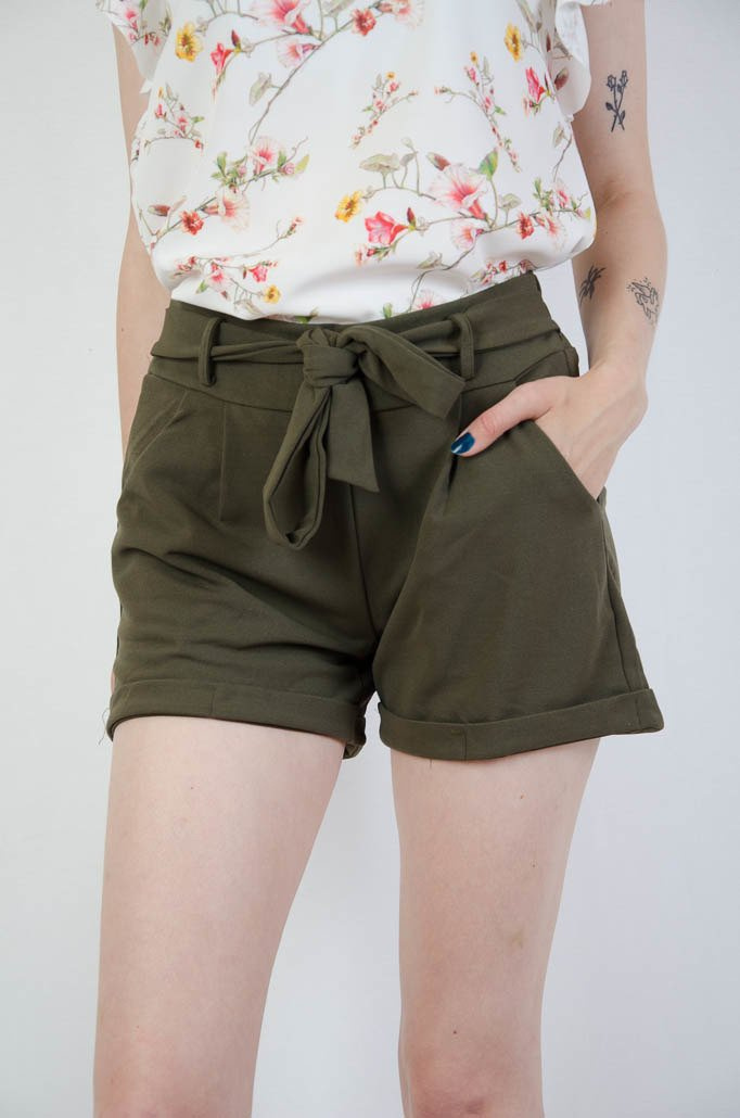 Zielone spodenki z wiązaniem w pasie