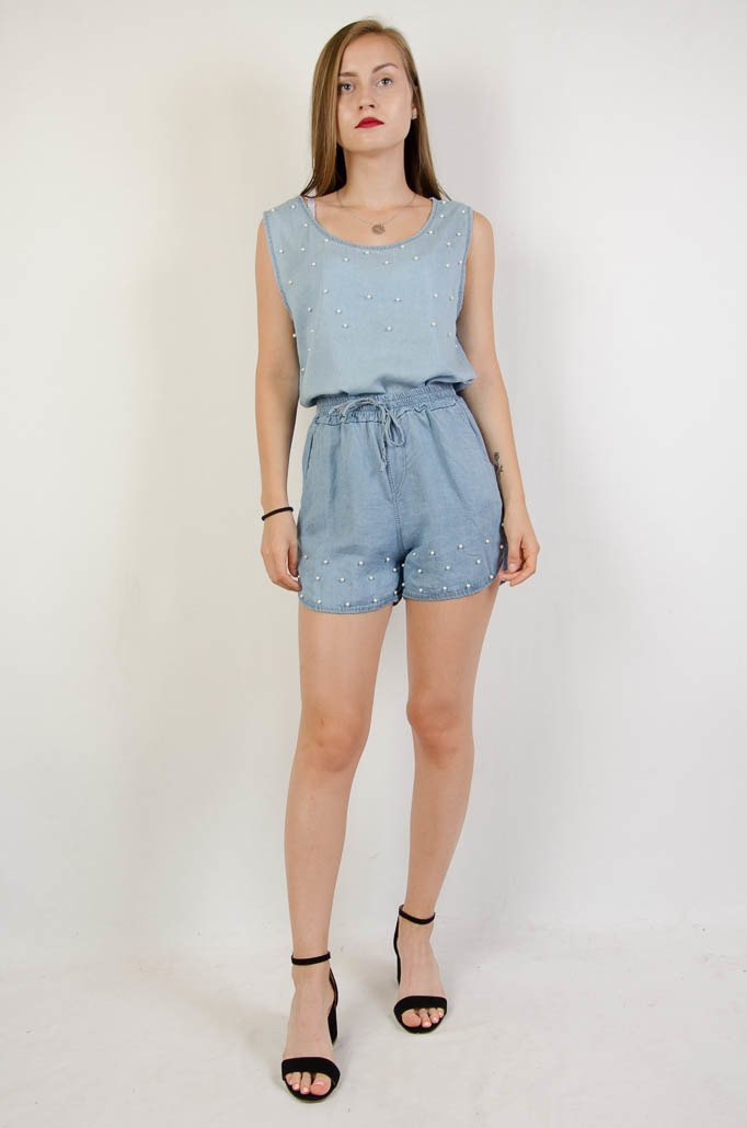NIEBIESKIE SZORTY Z KORALIKAMI