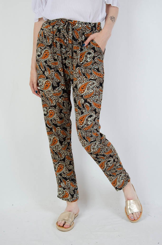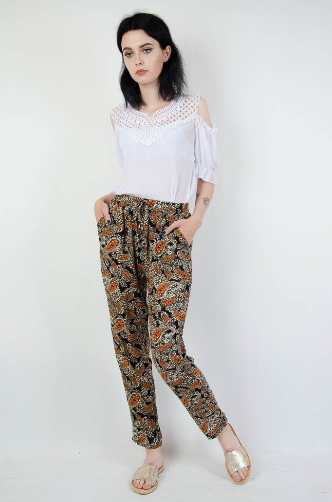 Długie spodnie alladynki w pomarańczowe wzory
