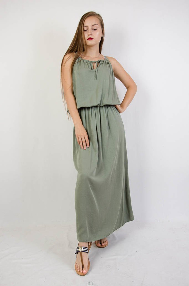 Długa zielona sukienka z rozporkiem na boku