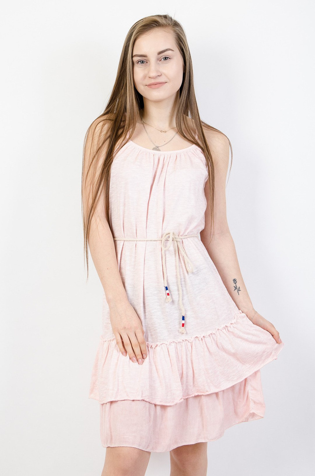 RÓZOWA SUKIENKA OVERSIZE NA CIENKICH RAMIĄCZKACH Z FALBANĄ NA DOLE