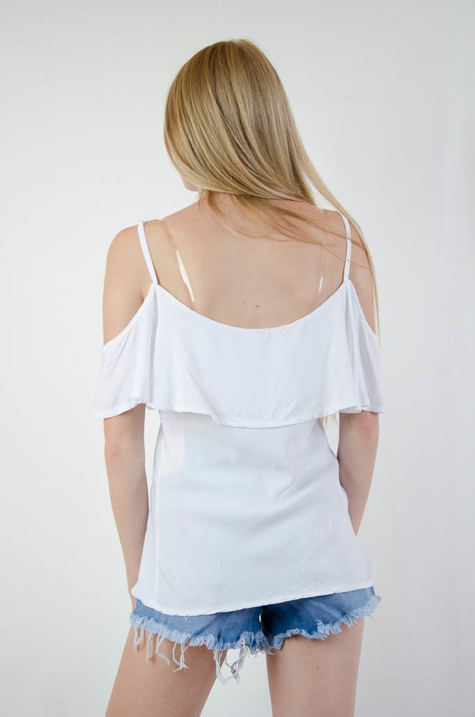 Biała bluzka hiszpanka na cienkich ramiączkach