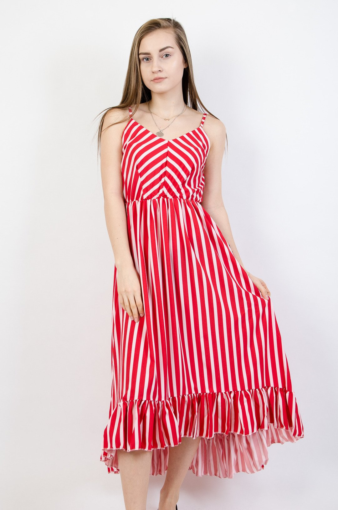 DŁUGA SUKIENKA W BIAŁO CZERWONE PASY