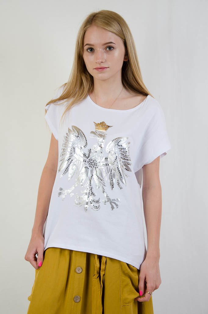 BIAŁY T-SHIRT OVERSIZE Z ORŁEM