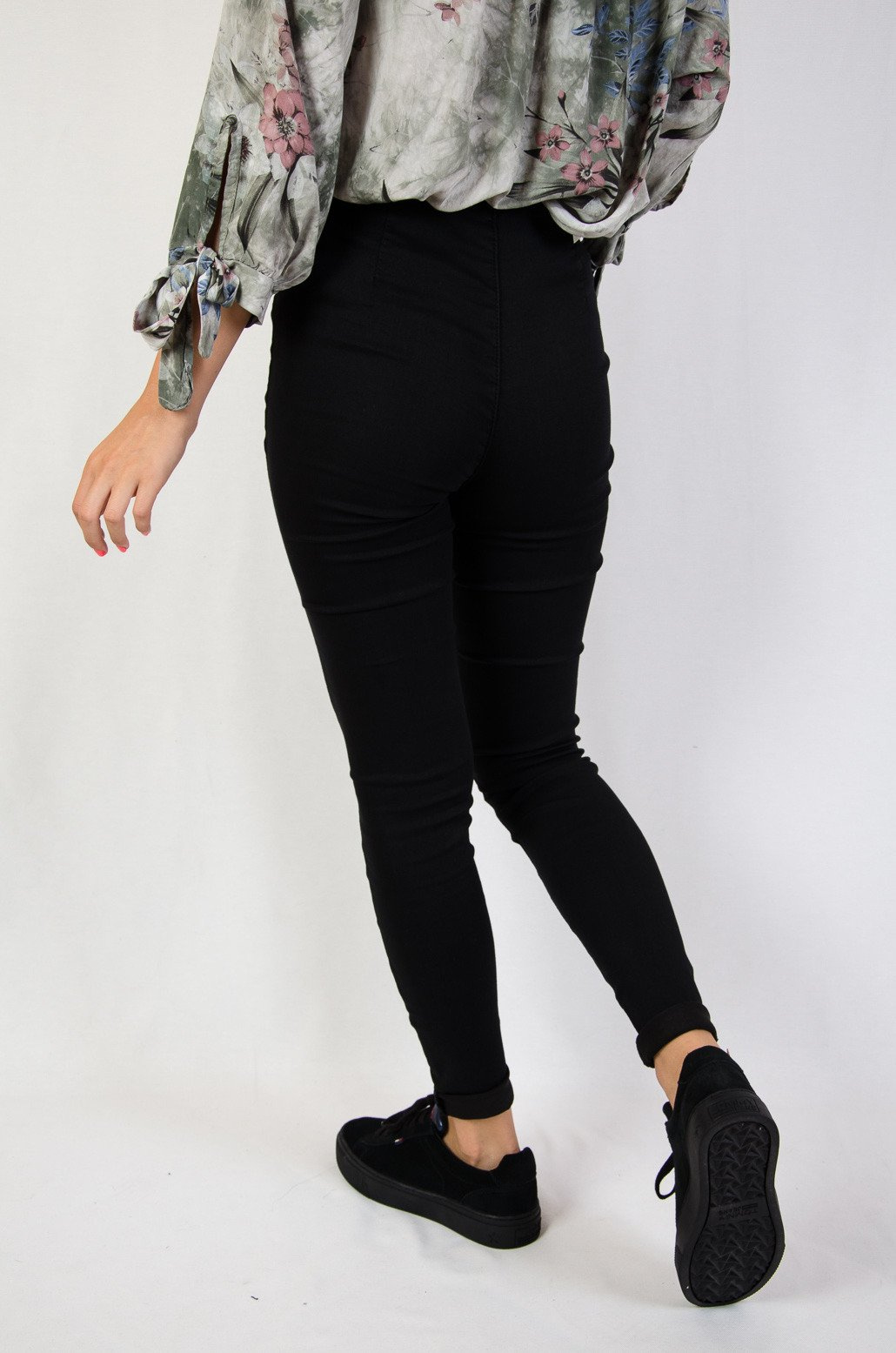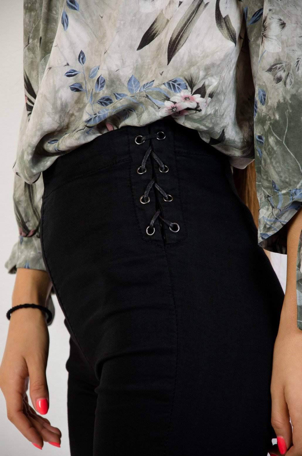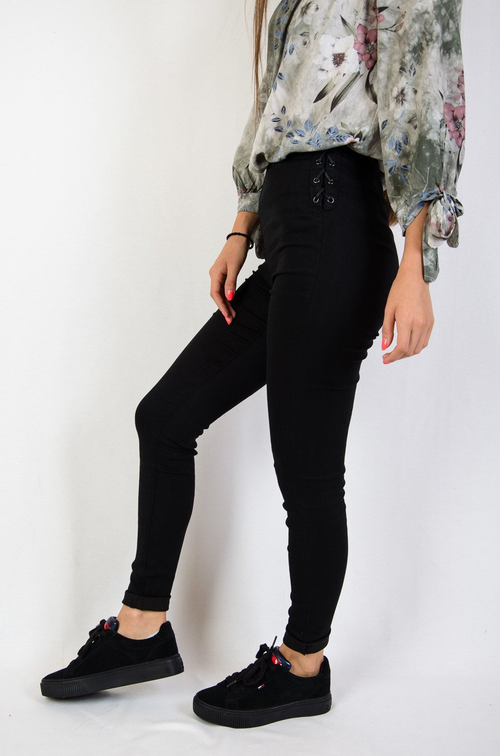 Czarne spodnie z gumką w pasie i wiązaniem na biodrach