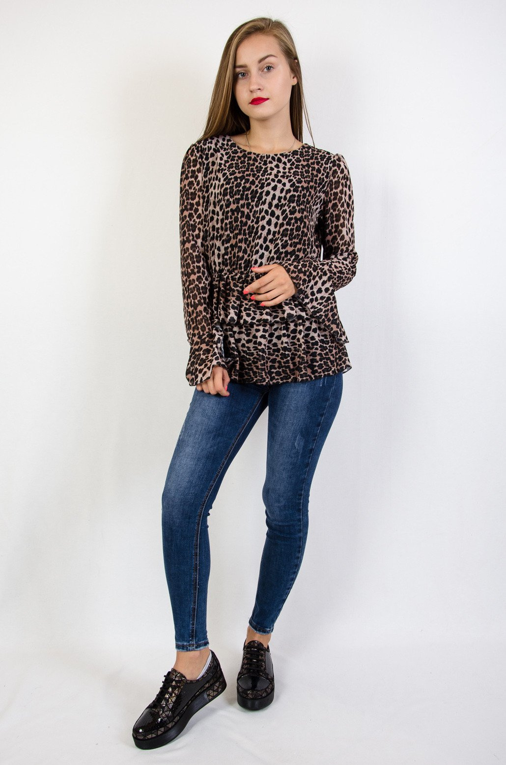 Bluzka w panterkę na długi rękaw z gumką na dole