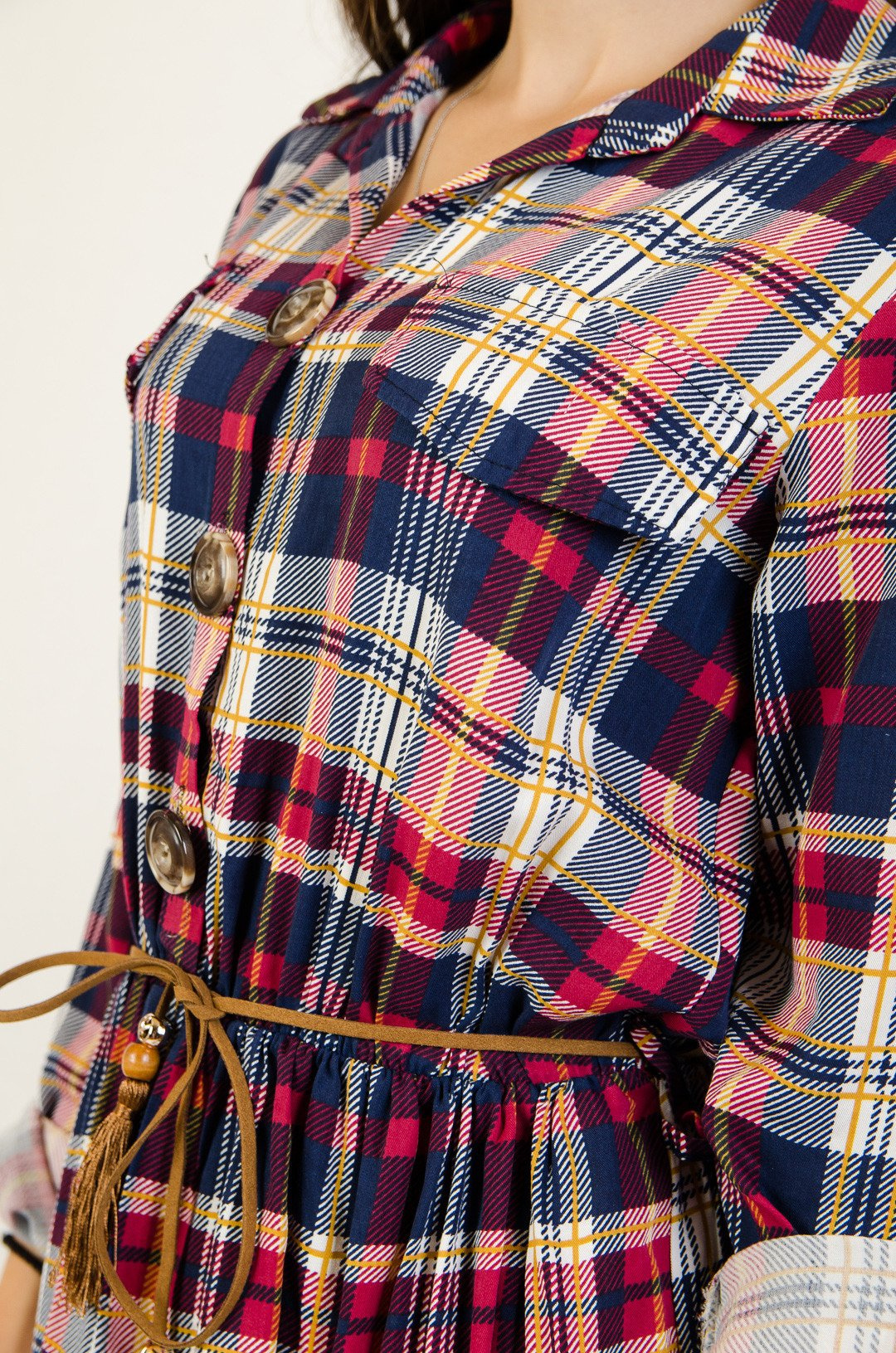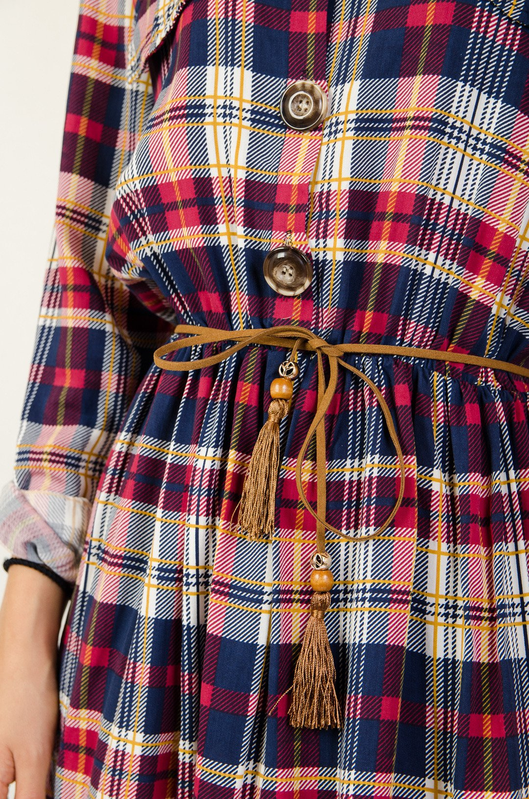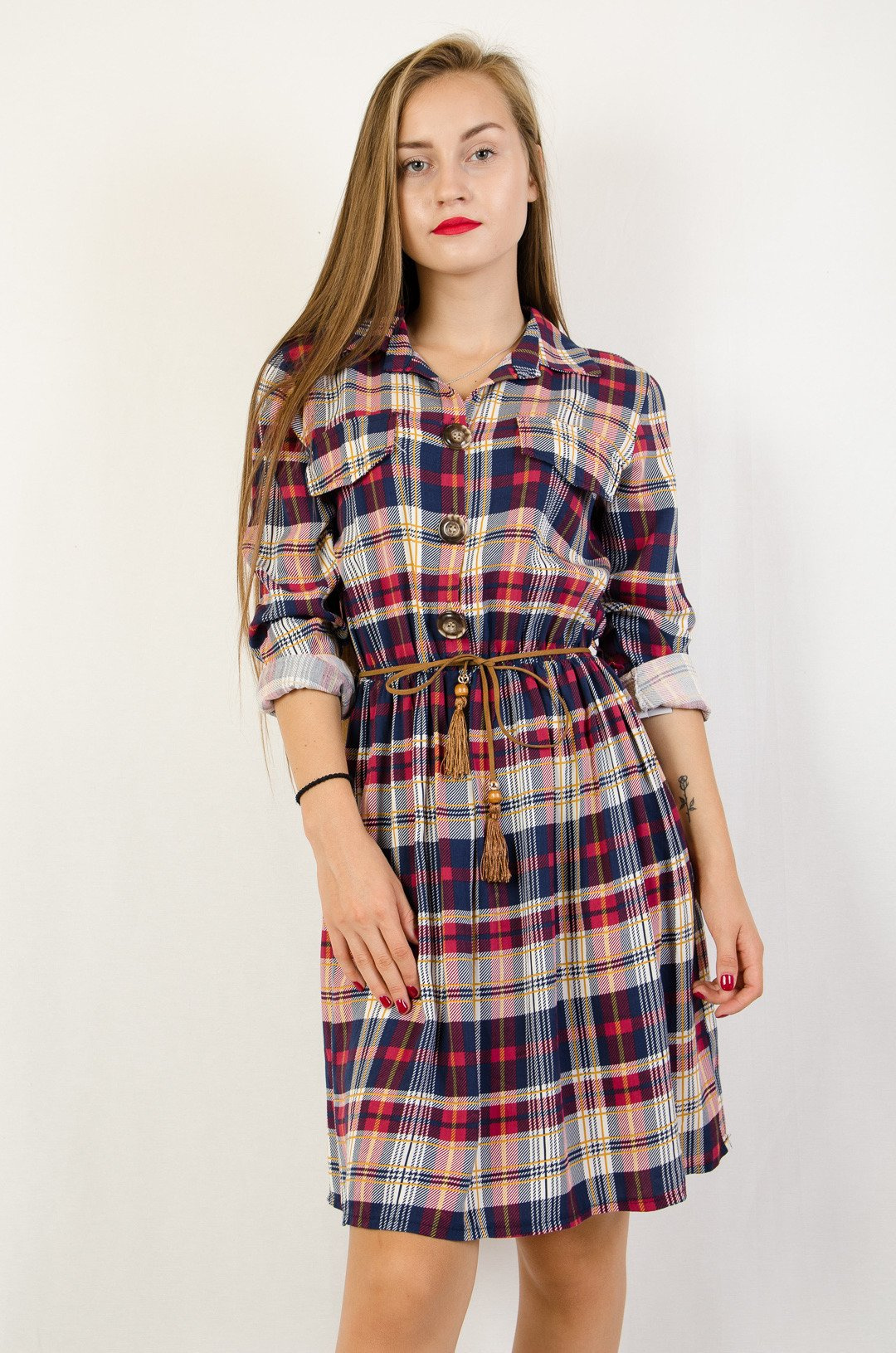 Koszulowa sukienka  w kratę z gumką w pasie, zapinana na guziki.