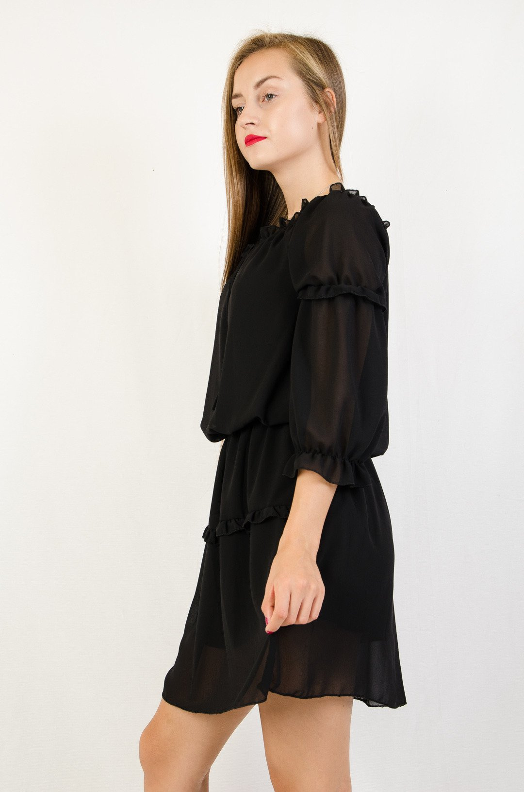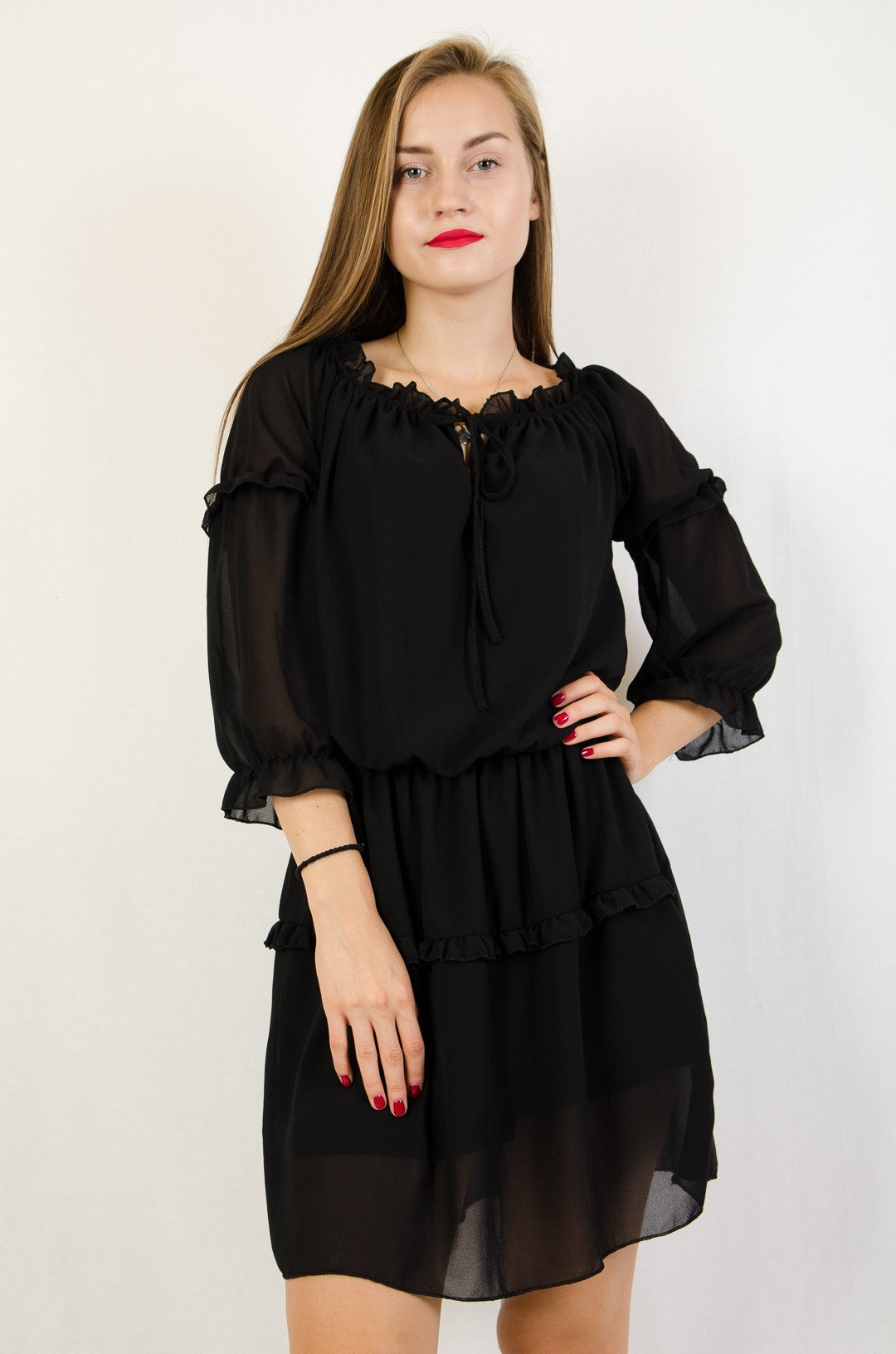 Czarna sukienka hiszpanka z wiązaniem przy dekolcie