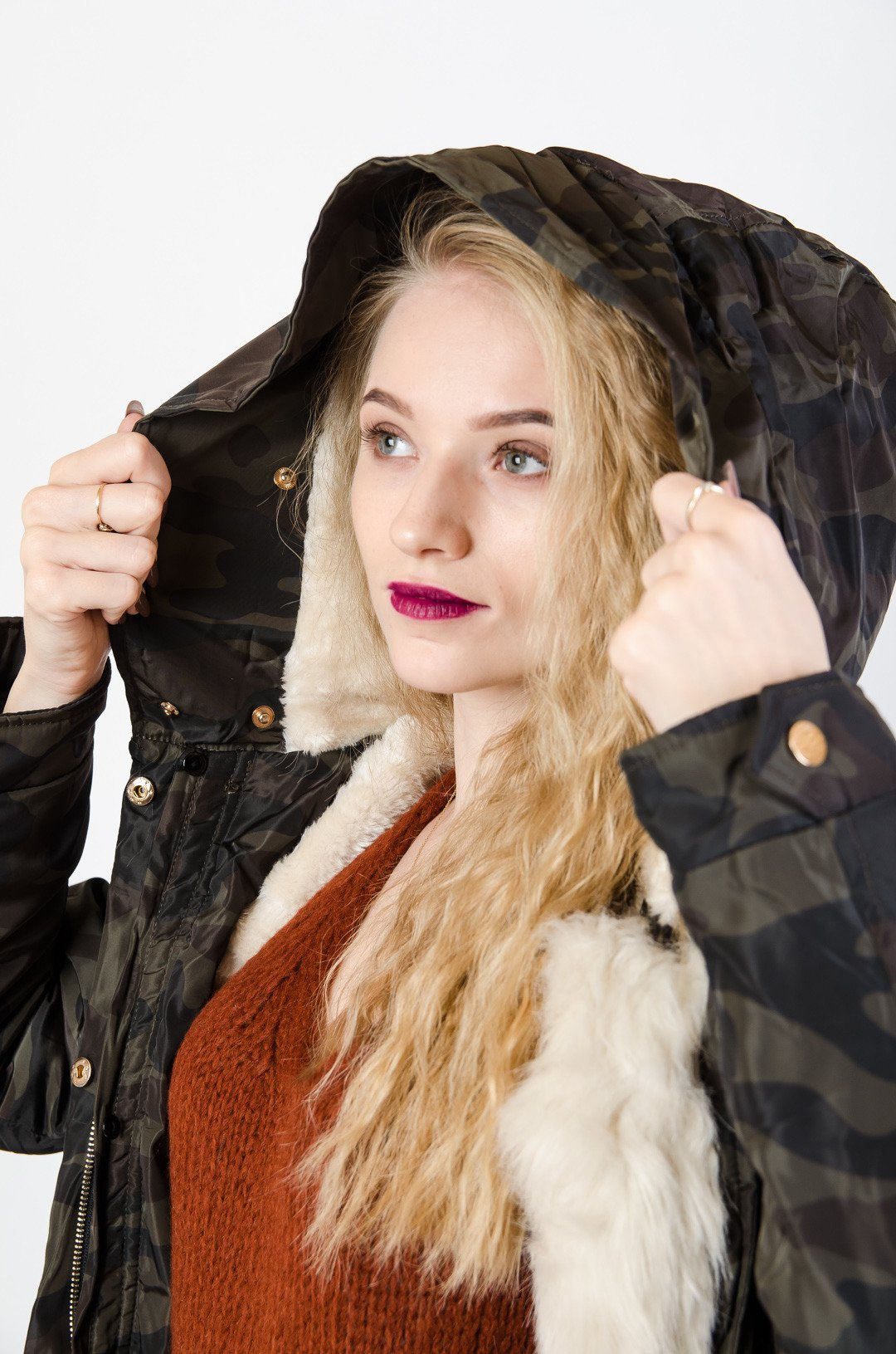 Kurtka moro ocieplana z futerkiem. Futerko przy zamku oraz na kapturze jest odpinane, co widać na zdjęciach.