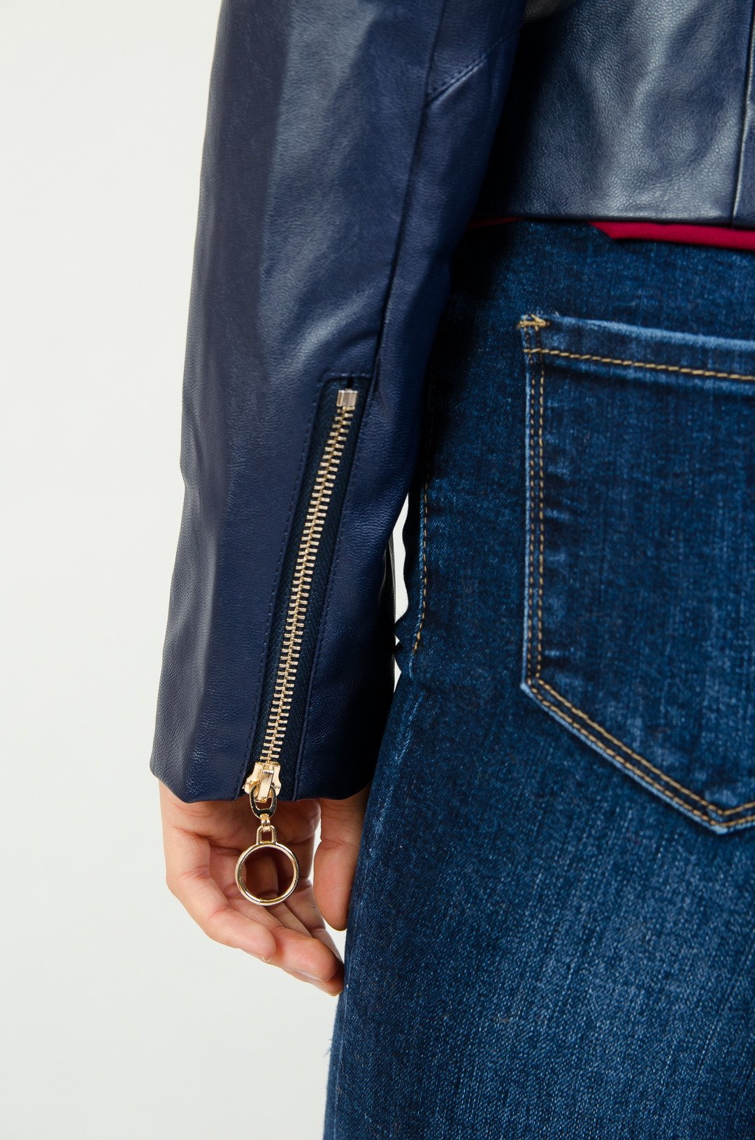 Granatowa ramoneska ze złotymi zamkami, bez kołnierza.