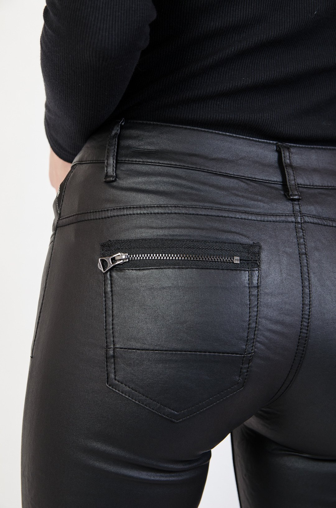 Czarne spodnie woskowane z zamkami z tyłu
