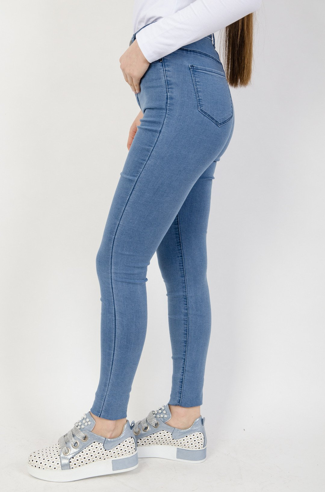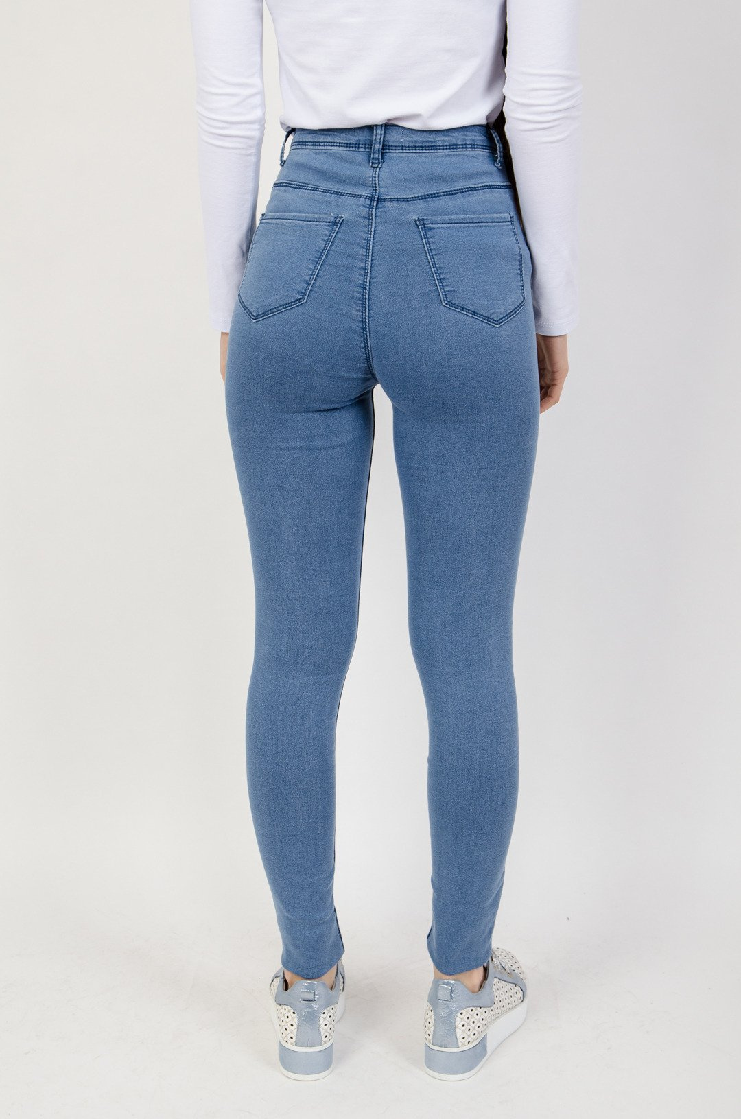 Jasno niebieskie spodnie - jegginsy z wysokim stanem