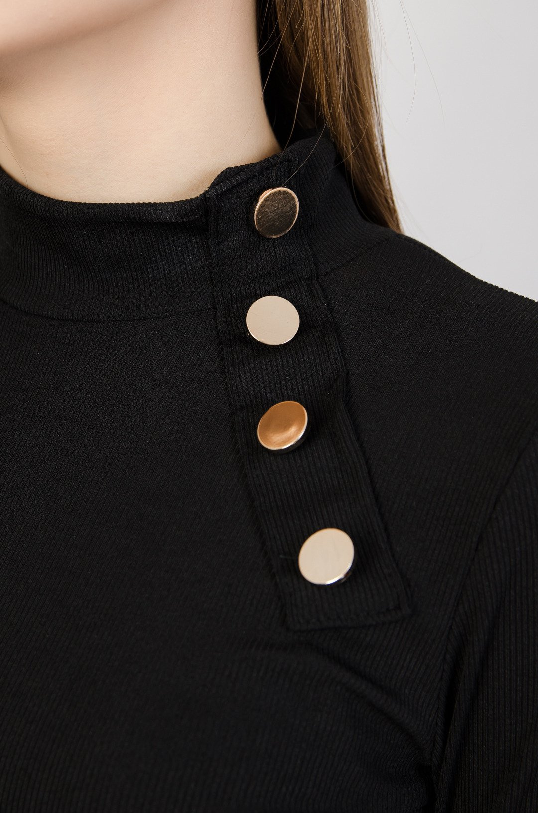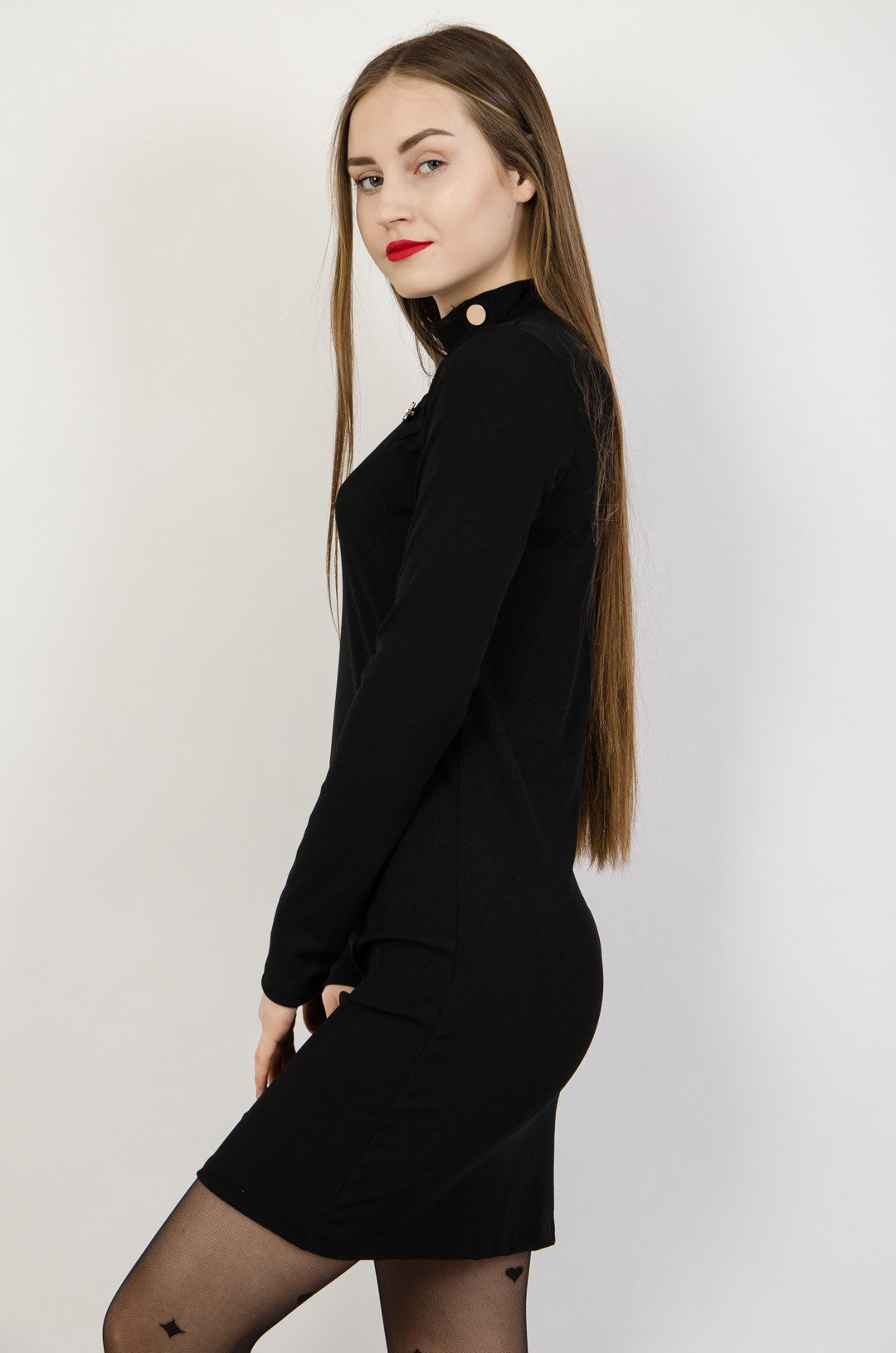 Czarna prążkowana sukienka ze złotymi guzikami