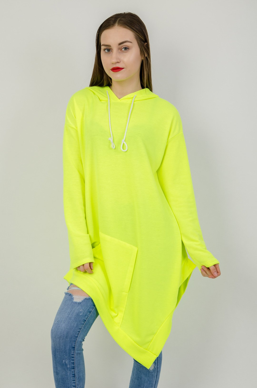 Neonowa asymetryczna bluza z kapturem