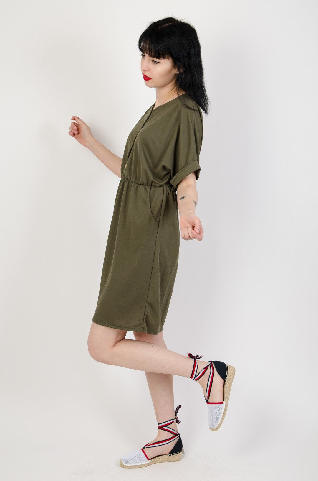 Zielona sukienka z gumą w pasie