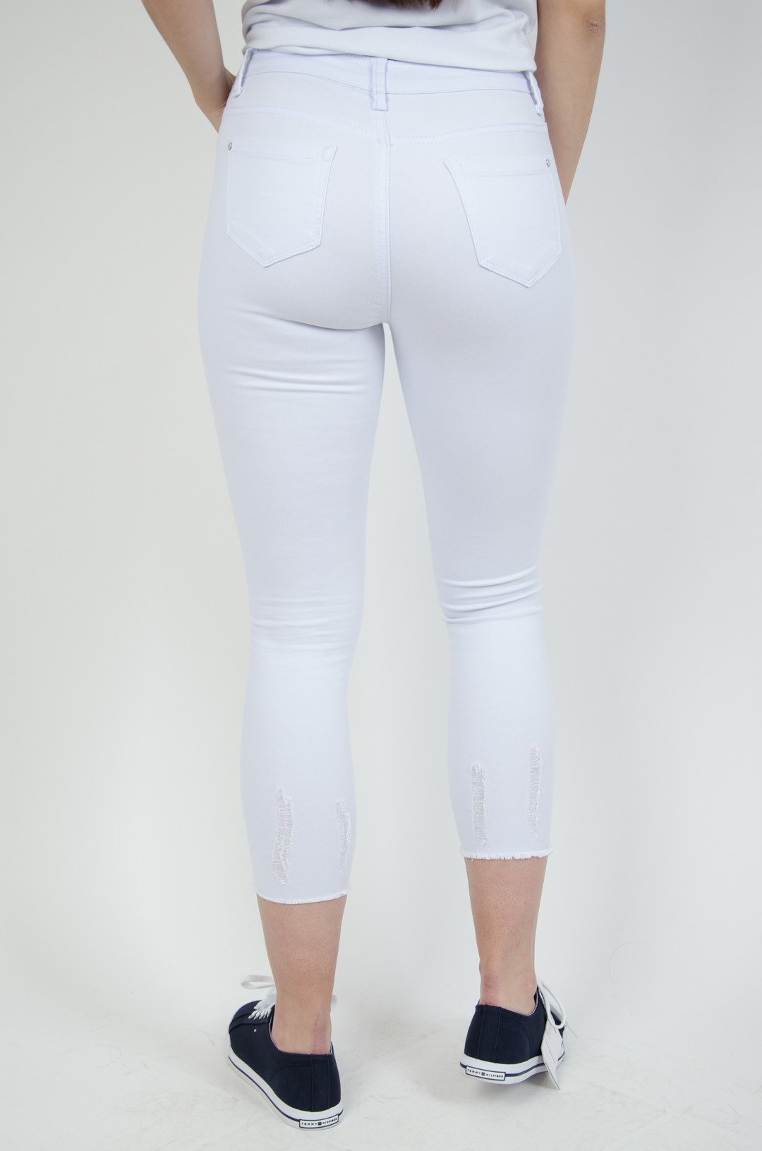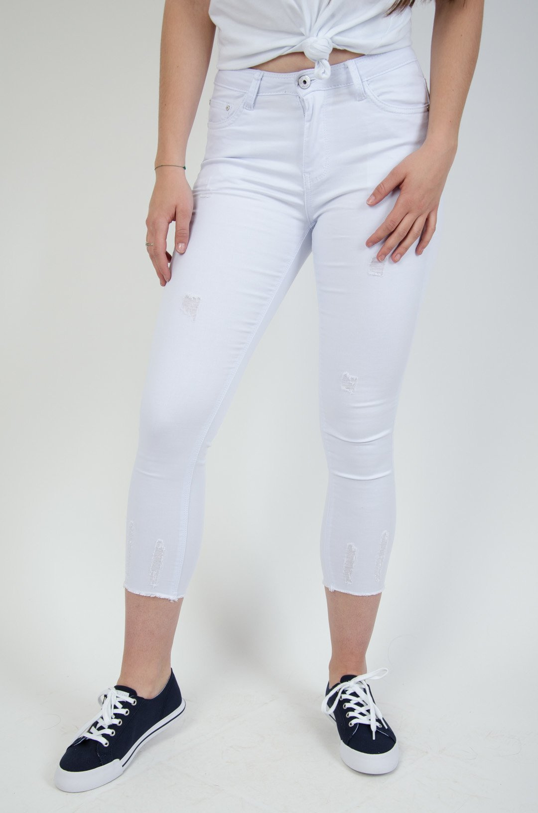 Białe spodnie z przetarciami