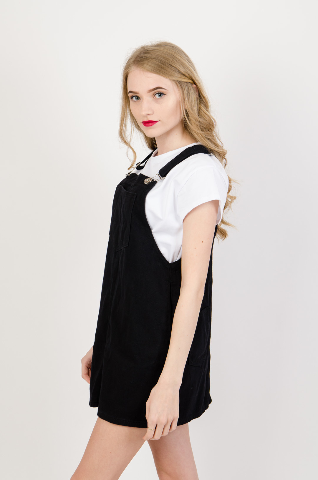 Czarna spódnica ogrodniczka z kieszeniami