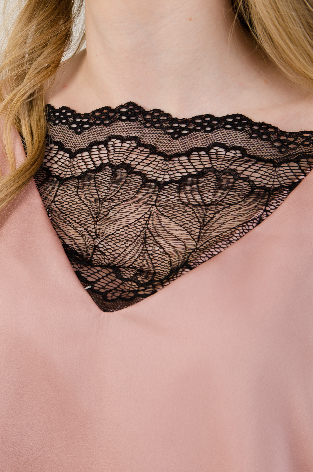 Różowa bluzka satynowa na cienkich ramiączkach z koronką w dekolcie