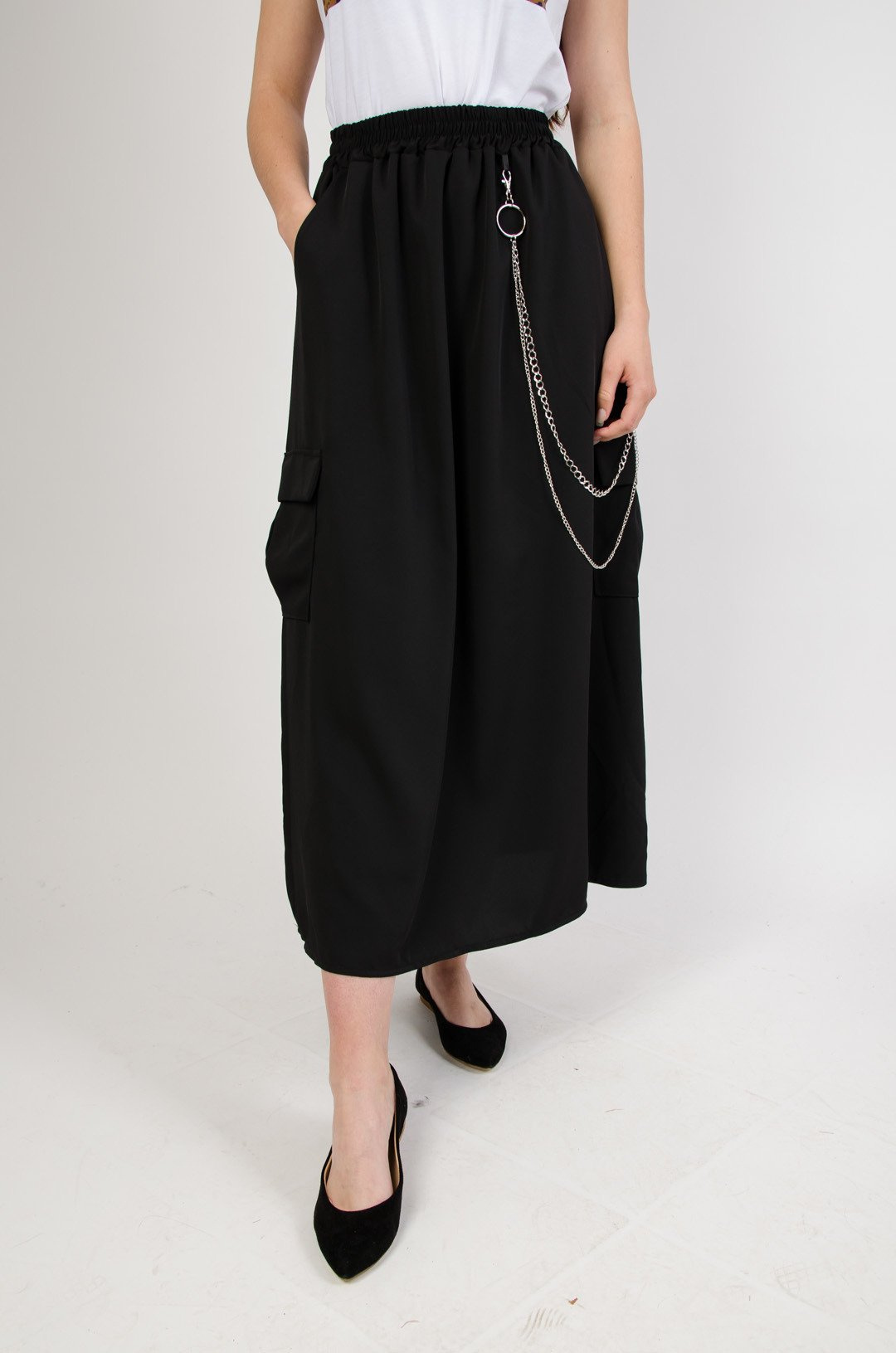 Długa czarna spódnica z kieszeniami oraz łańcuszkiem