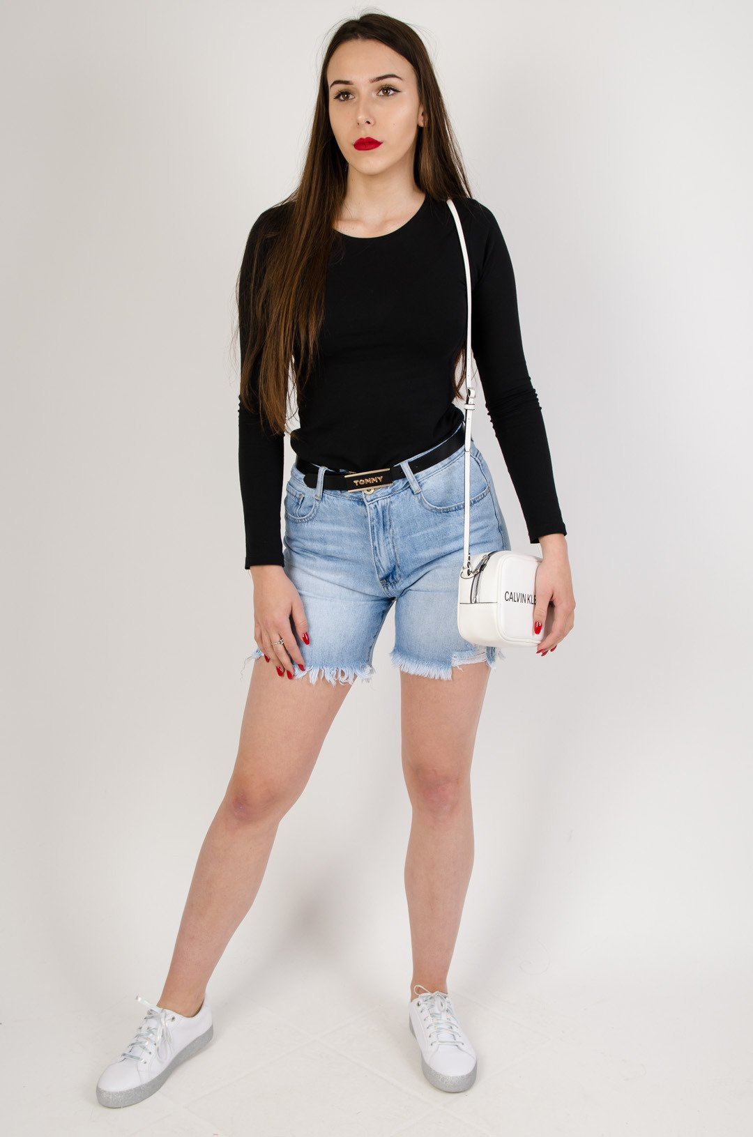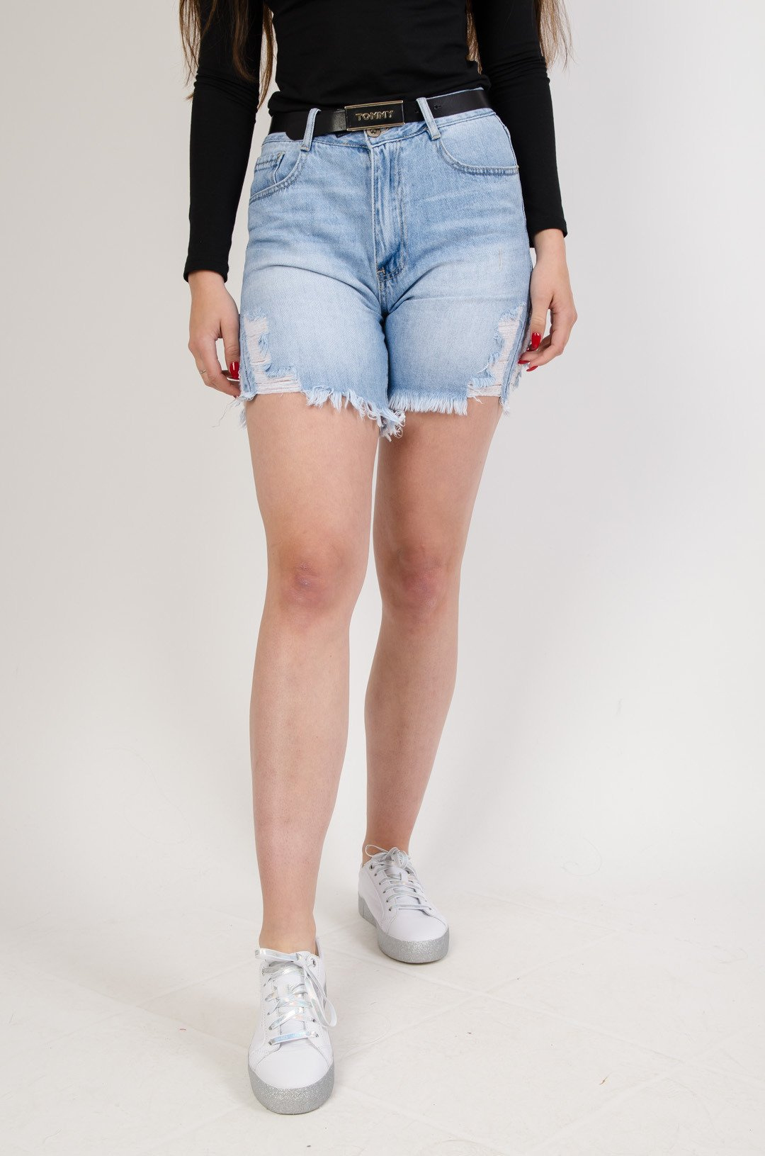 Jeansowe bermudy z przetarciami