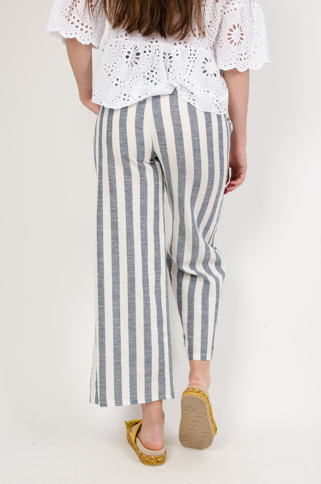 Spodnie materiałowe w biało-niebieskie paski