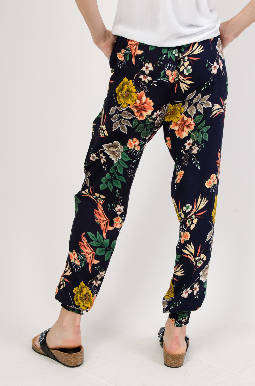 Granatowe alladynki w kwiaty