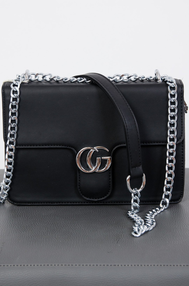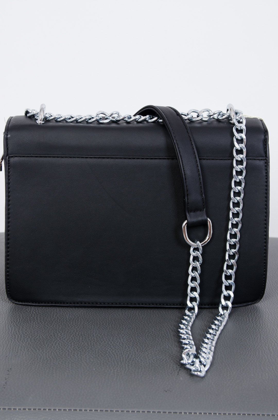 Czarna torebka typu kuferek ze srebrnym łańcuszkiem