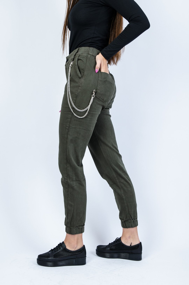 Zielone joggery z łańcuszkiem