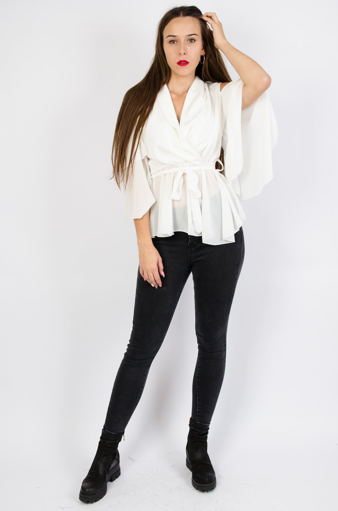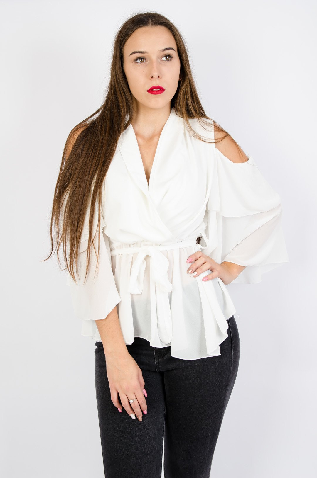 Biała bluzka hiszpanka z odkrytymi ramionami