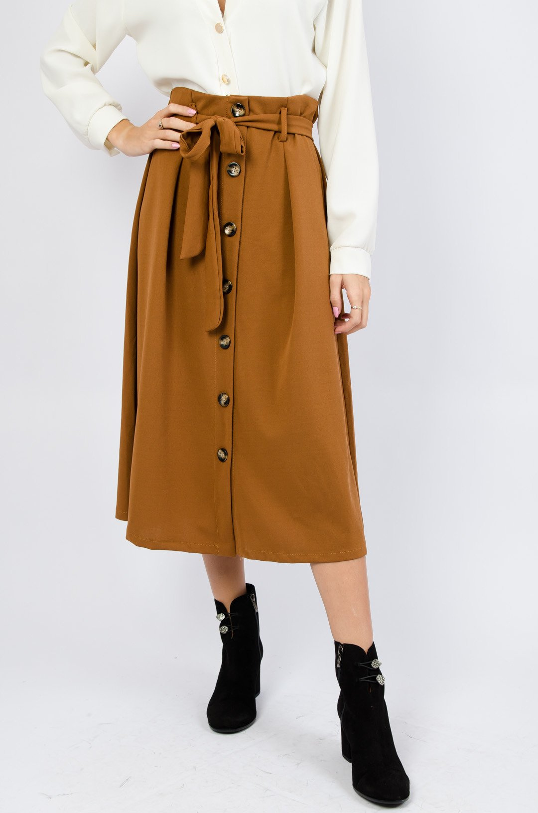 Brązowa plisowana spódnica midi