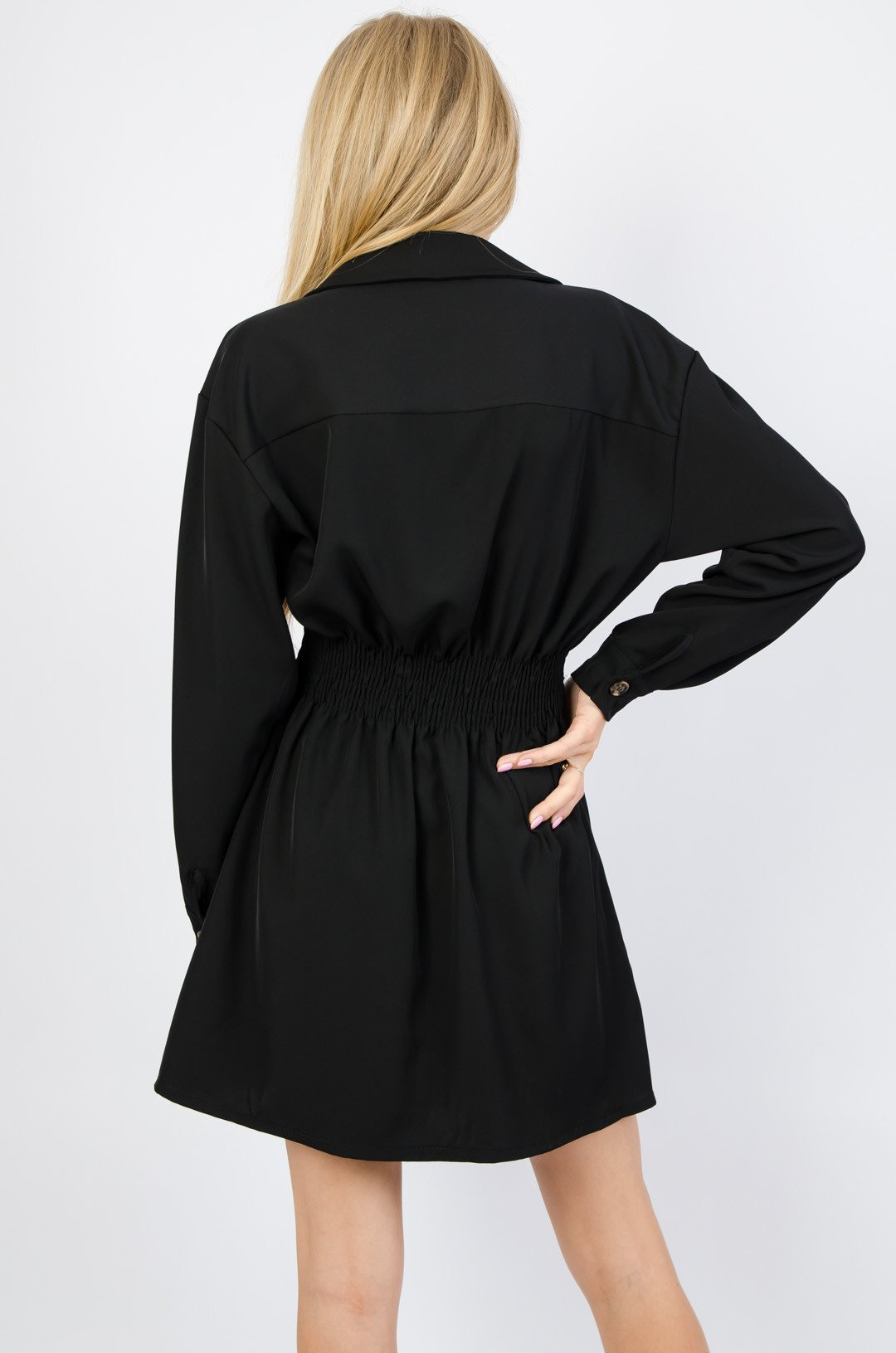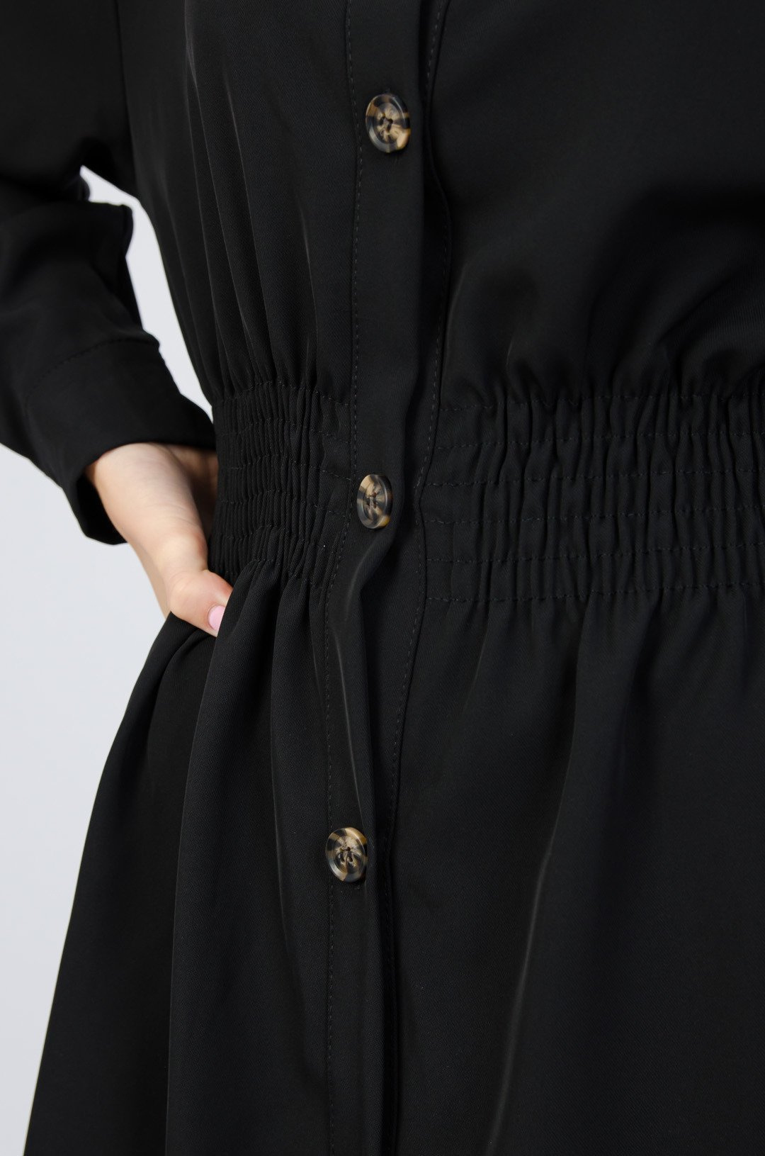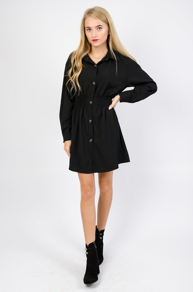 Czarna sukienka zapinana na guziki z gumą w pasie