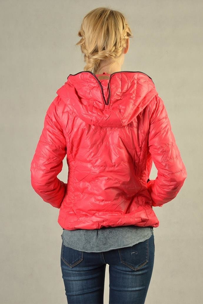 Niezwykle stylowa, krótka, pikowana kurtka z kapturem. Zapinana na suwak. Z przodu dwie kieszenie.