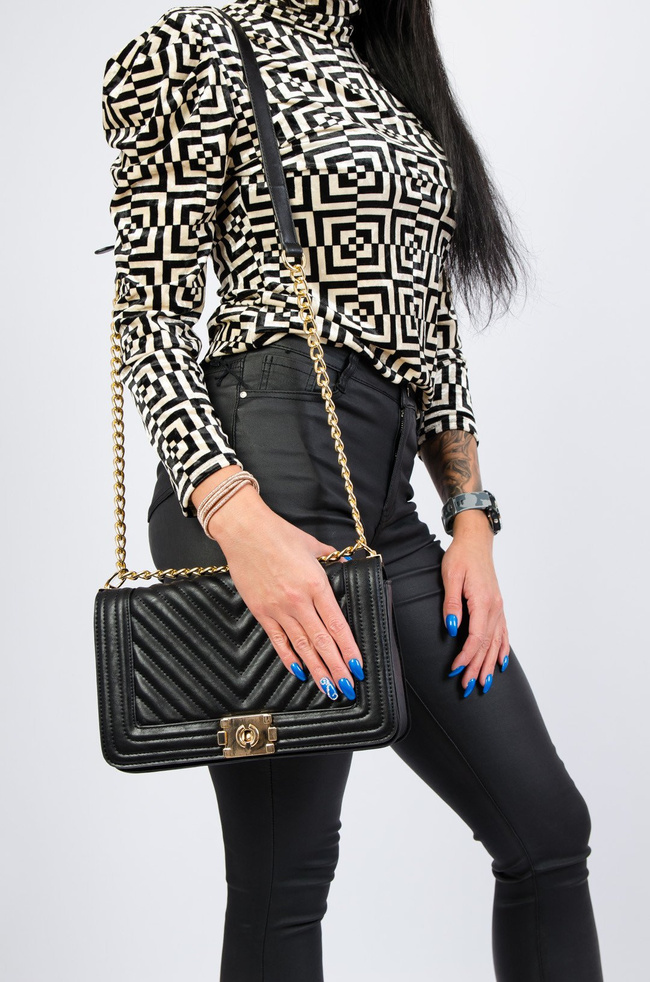 Czarna pikowana torebka ze złotym łańcuszkiem