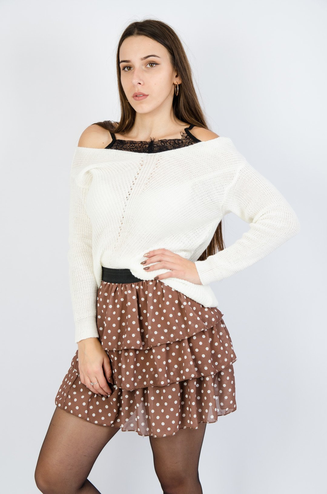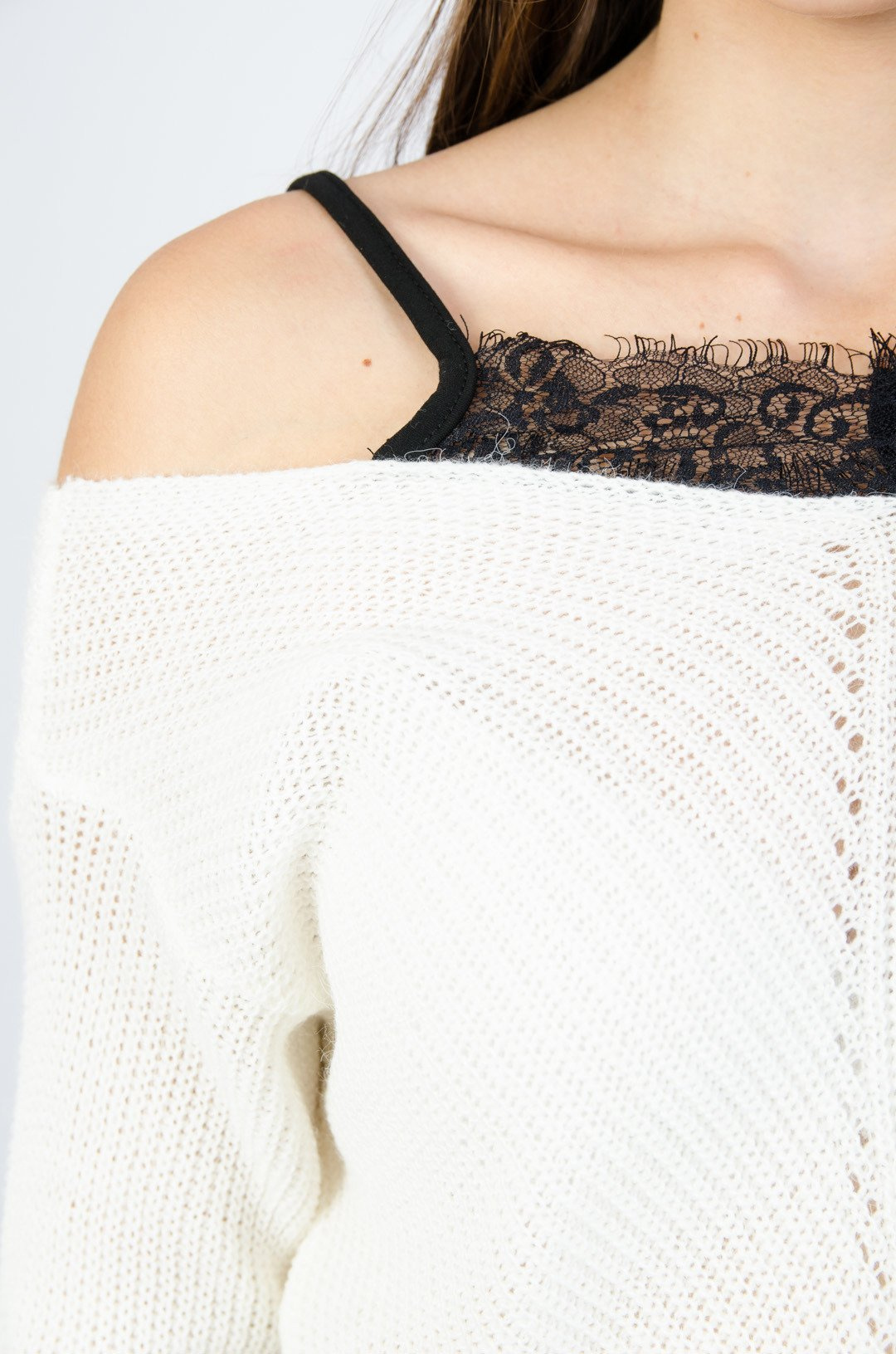KREMOWY DŁUGI SWETER Z KORONKĄ