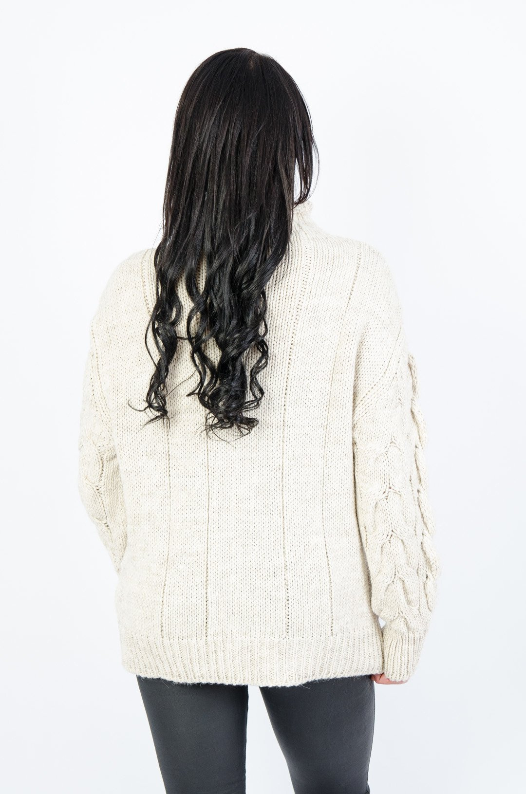 BEŻOWY SWETER GOLF Z WARKOCZOWYM SPLOTEM
