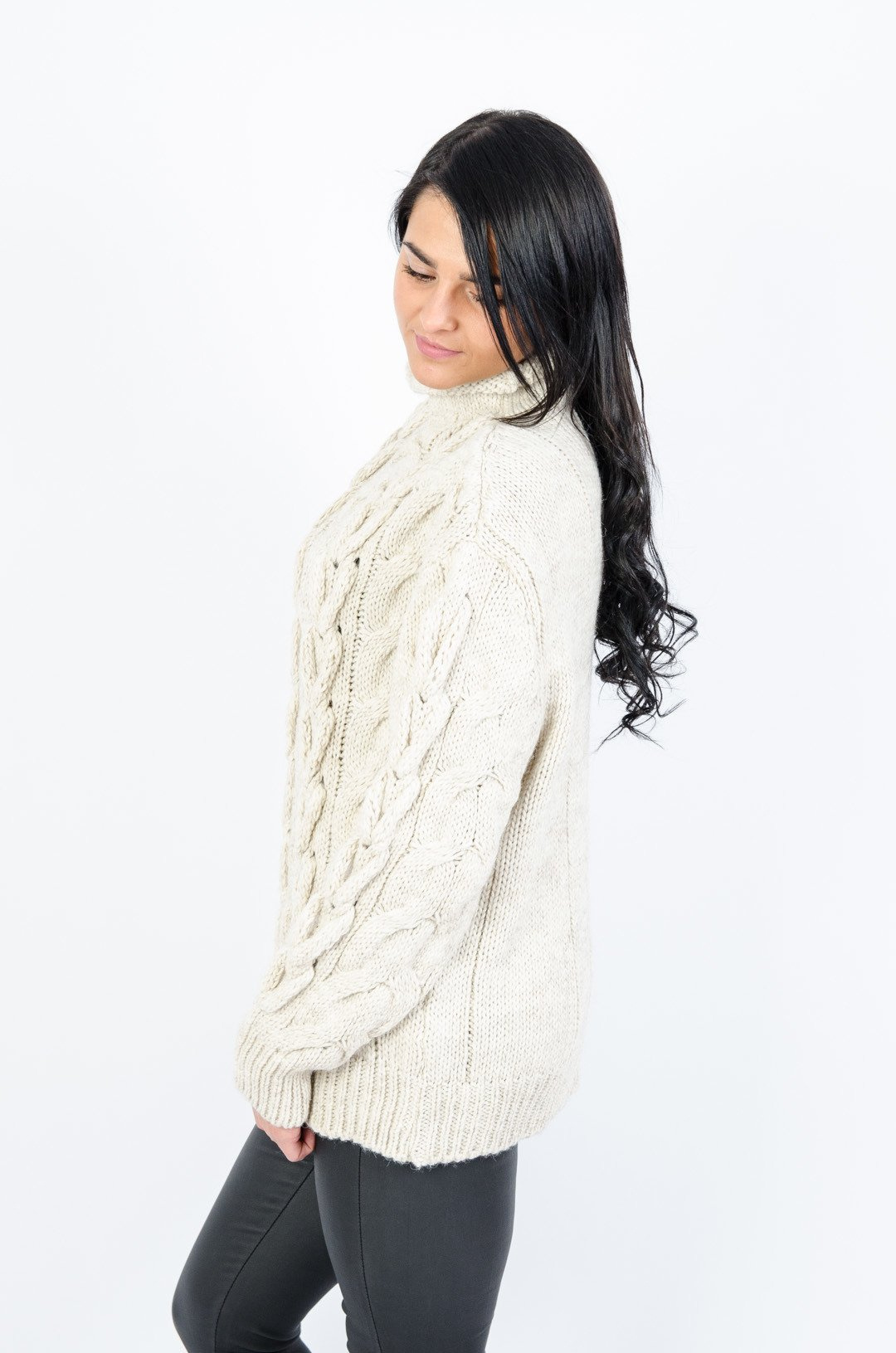 BEŻOWY SWETER GOLF Z WARKOCZOWYM SPLOTEM
