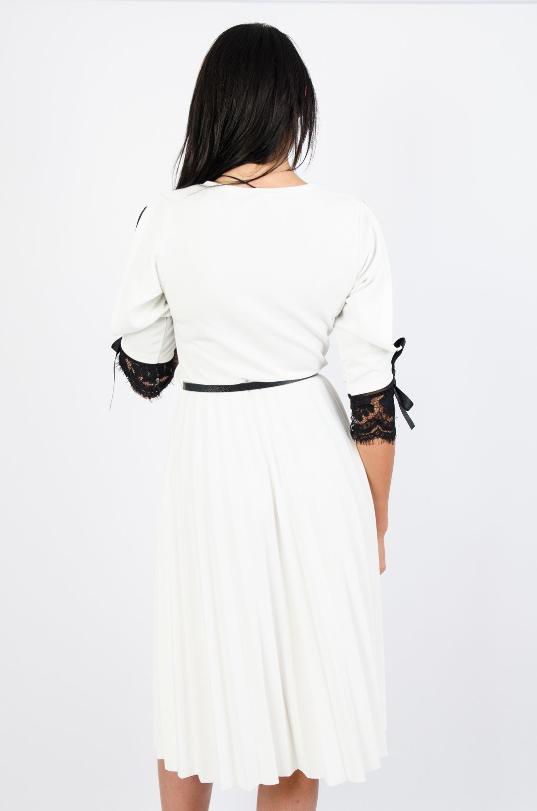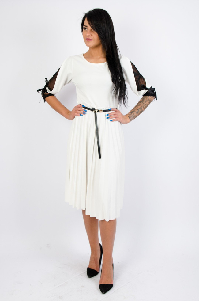 BIAŁA SUKIENKA MIDI Z PLISOWANYM DOŁEM + PASEK