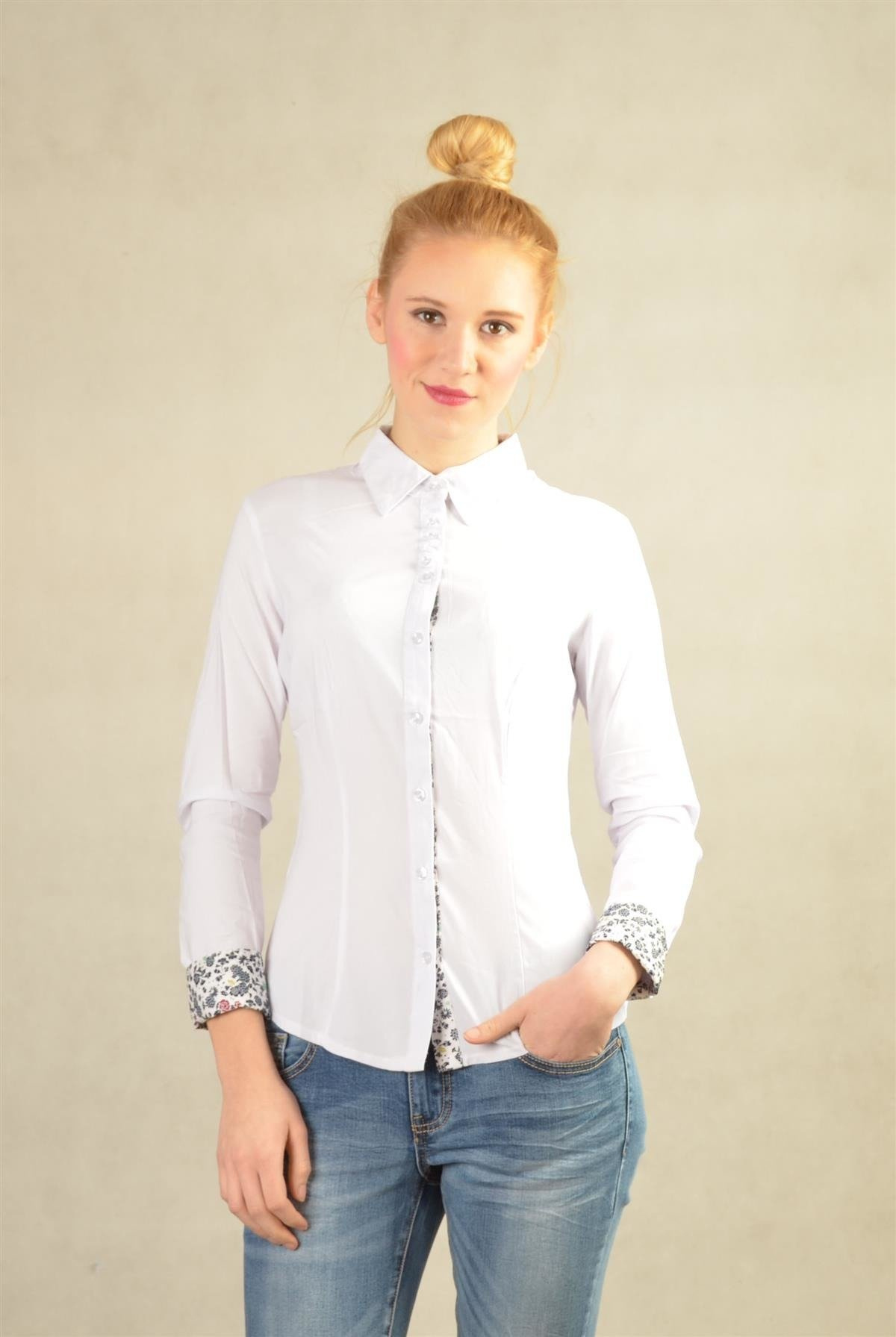 Elegancka koszula, zapinana na guziczki. Mankiety w kwiaty