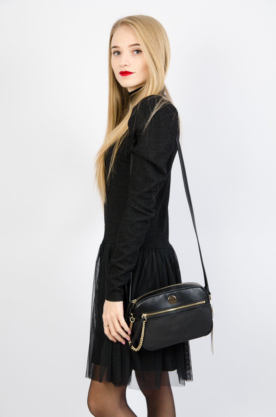 CZARNA POŁYSKUJĄCA SUKIENKA Z PÓŁGOLFEM - DÓŁ TIULOWY
