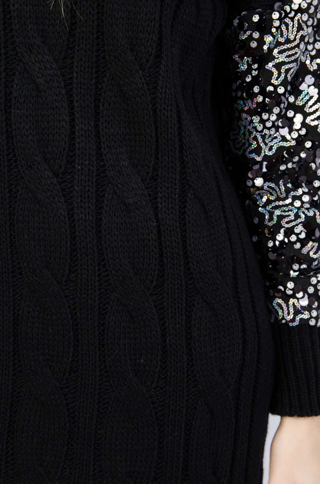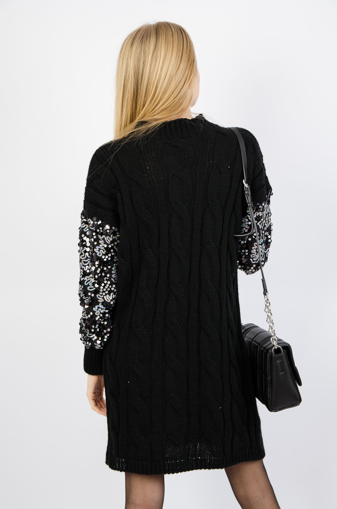 CZARNA SWETERKOWA SUKIENKA Z CEKINOWYMI RĘKAWAMI