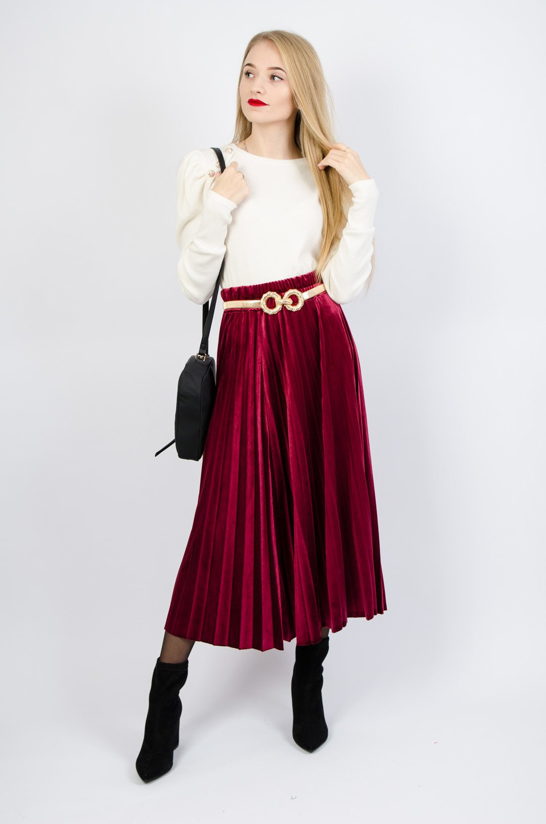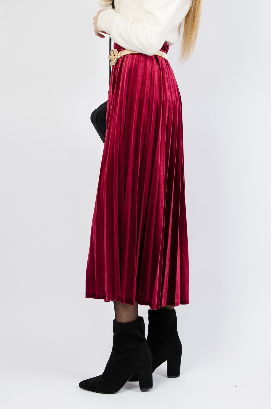 BORDOWA WELUROWA SPÓDNICA Z PLISOWANIEM