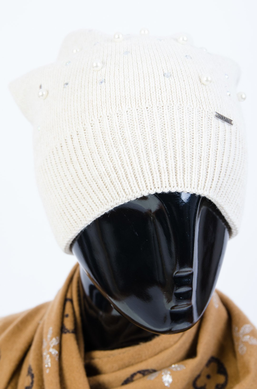 CZAPKA SMERFETKA Z KORALIKAMI W KOLORZE KREMOWYM