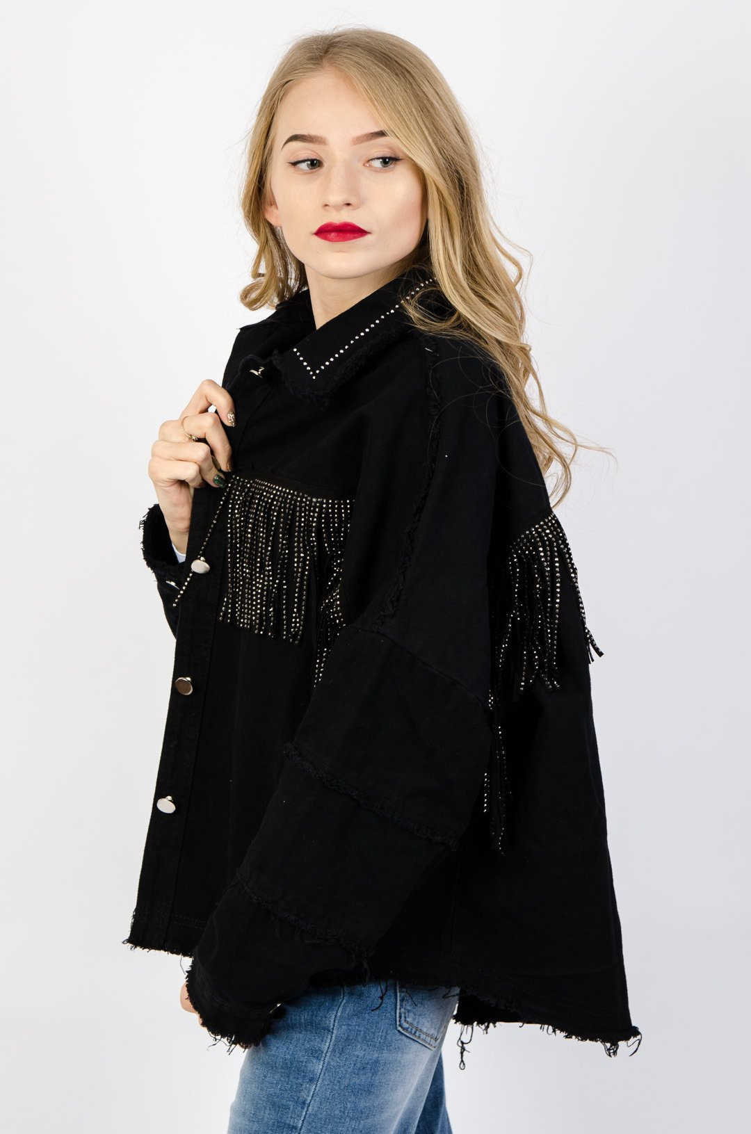 CZARNA KOSZULA JEANSOWA Z OZDOBNYMI FRĘDZLAMI